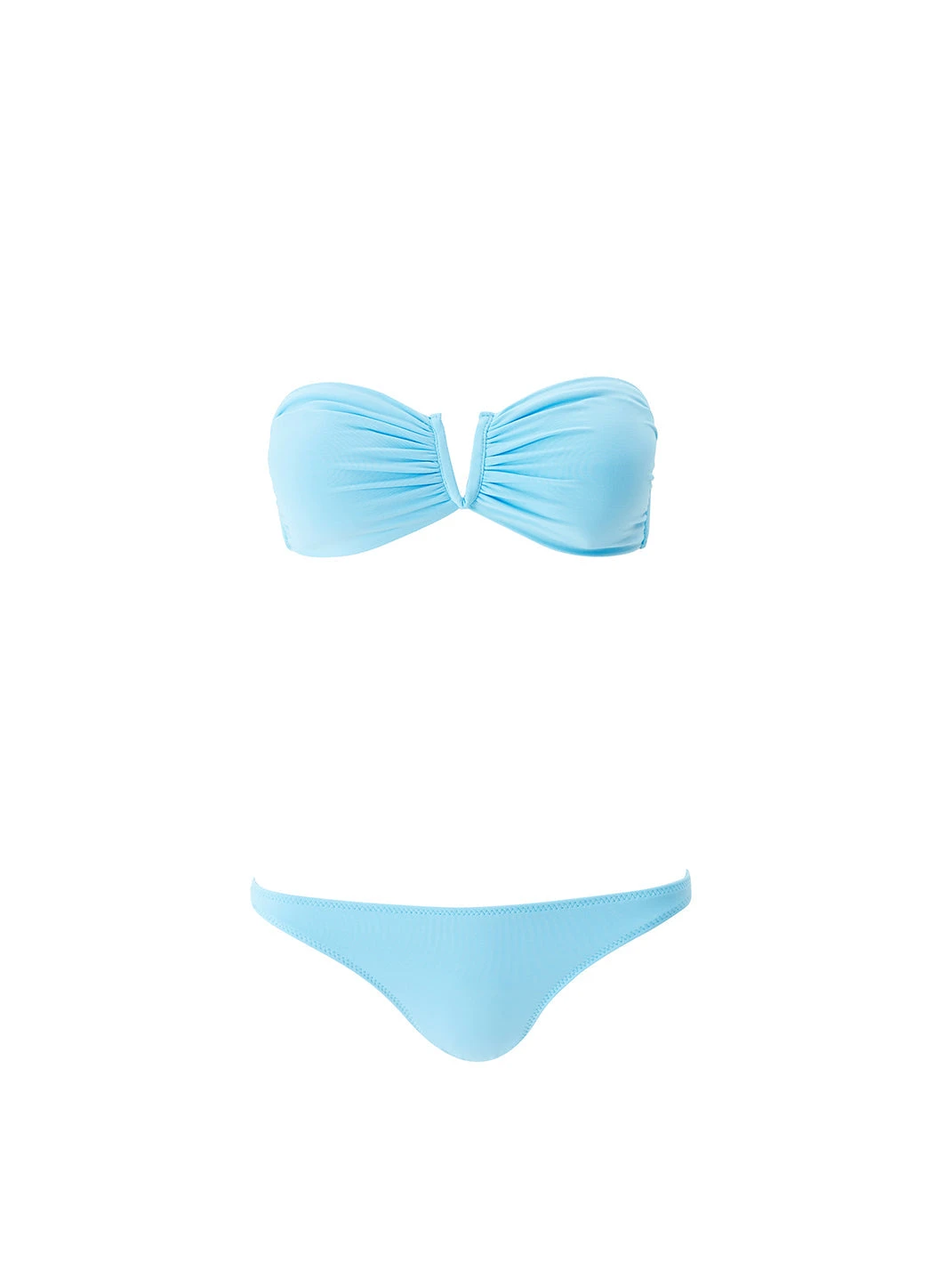 Channel the crystal clear waters of your destination in the Alba Bikini. An Odabash staple, this style is now available in Celeste, a fresh shade of blue with SPF 50+ protection. The bandeau bikini top boasts a ‘V’ neckline, subtle ruching and removable pads, finished with a clasp back. The set is completed with matching hipster bottoms, adding to its relaxed, laid-back appeal.