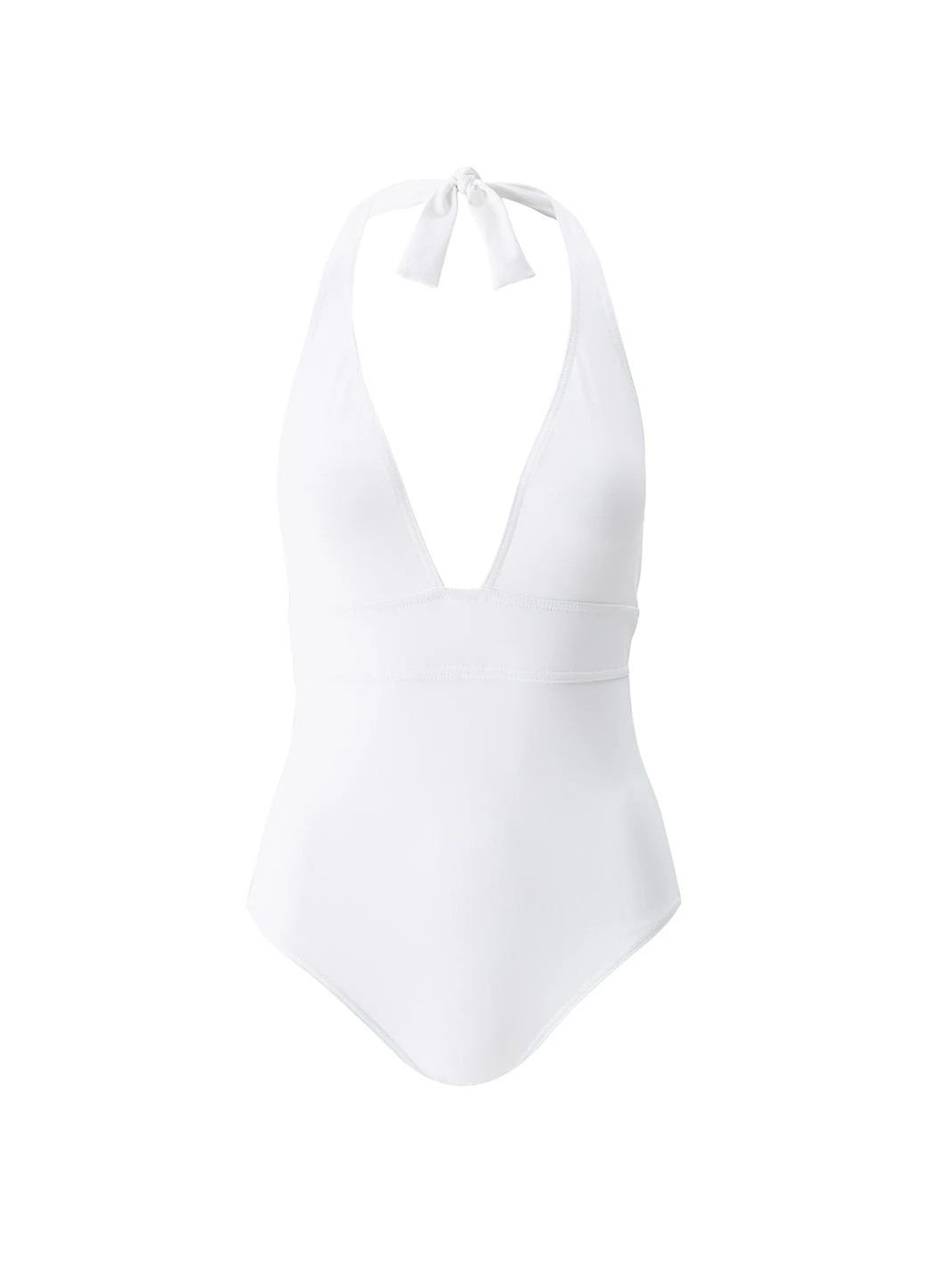 Opt for timeless glamour as you head for the beach in the Andros Swimsuit. Effortlessly elegant, this crisp White one-piece is crafted from premium, breathable swim fabric with SPF 50+ protection. This streamlined design features a halterneck tie with a plunging ‘V’ neckline and a figure-flattering panel beneath the bust to enhance the waist. Style with our iconic Pareo cover-up as you trade the cabana for cocktails.