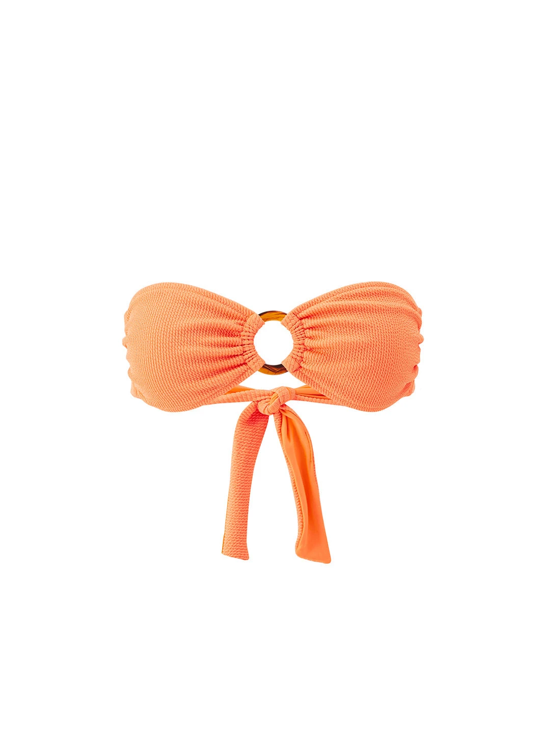 In an exciting shade of Orange, cut from our crinkle textured swim fabric the exclusive Belgium bikini top is a must-have for refreshing your swimwear wardrobe this season. A bandeau top features a large tortoiseshell trim at the centre of the cups, with a tie-back fastening for a secure fit. Wear with the Belgium bikini bottoms in same shade.