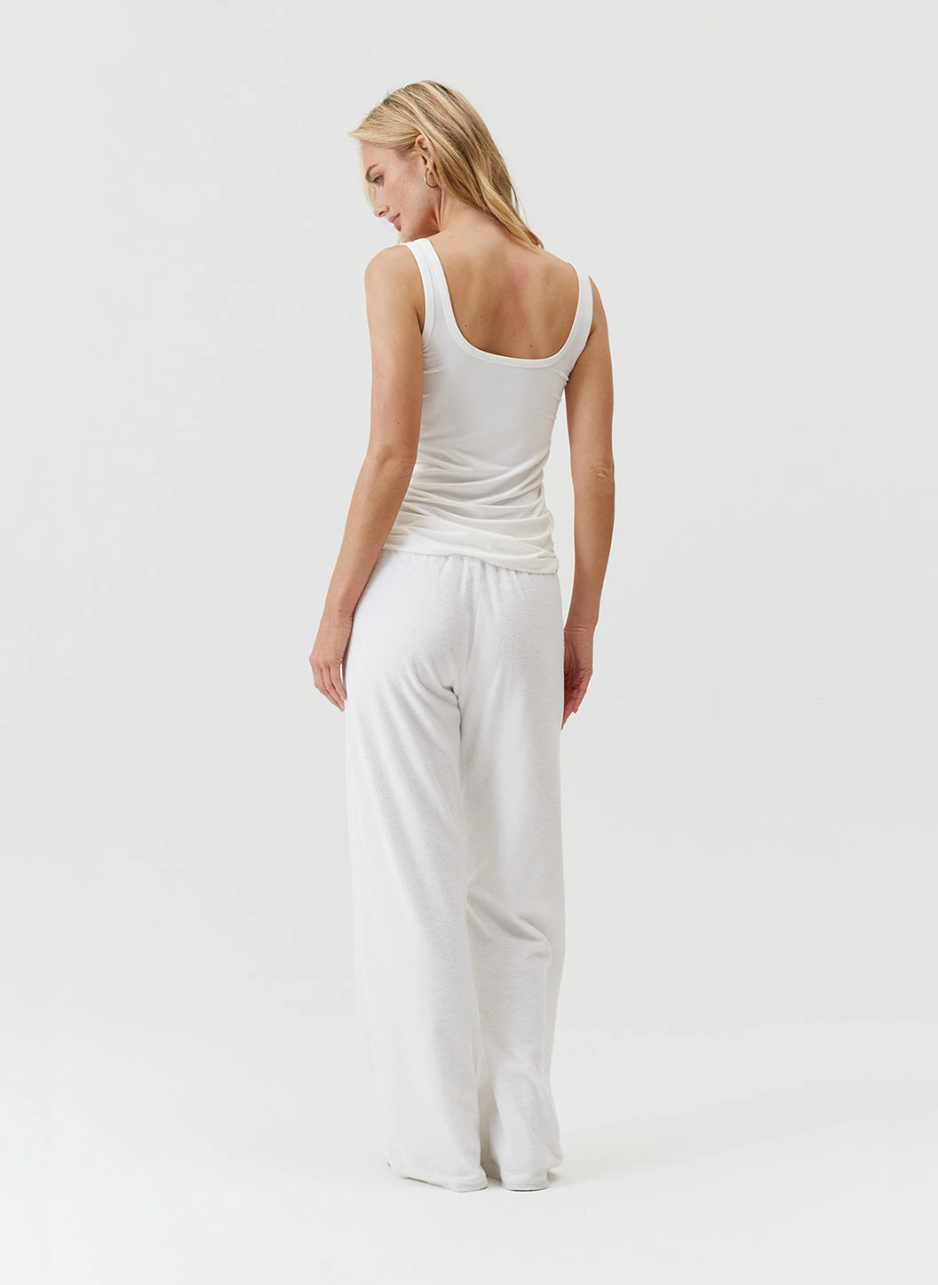 Crafted from a super soft, breathable fabric with multiway stretch allowing for it to fit perfectly against the body, the new Camille top is a key addition for your capsule wardrobe. An exclusive silhouette for this season, Camille in White features a flattering scooped neckline. We recommend styling the Camille with pieces from the latest loungewear collection.