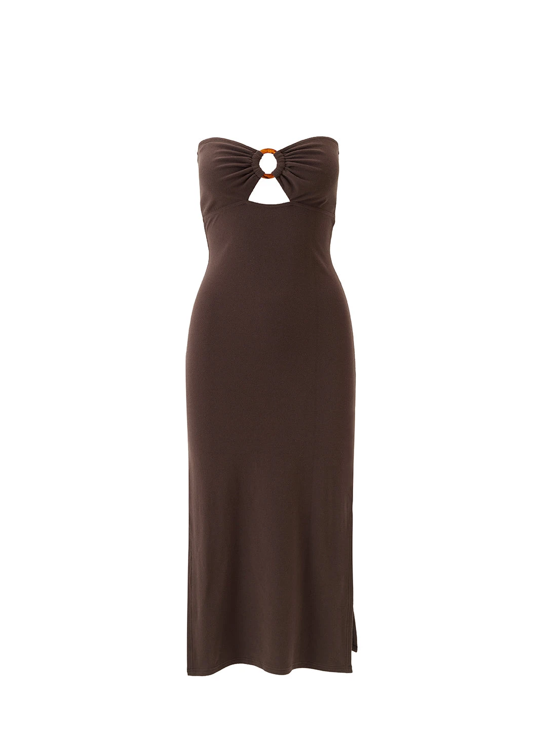 In this season’s most sought-after shade, meet the exclusive Jane Dress in Coffee. Crafted from an ultra-soft premium terry fabric, cut in a form fitting bandeau silhouette, this midi dress boasts a sultry cut-out detailing accentuated by ring trim at the bust. Doubling as both swimwear cover up and casual daytime dress, how will you wear yours?