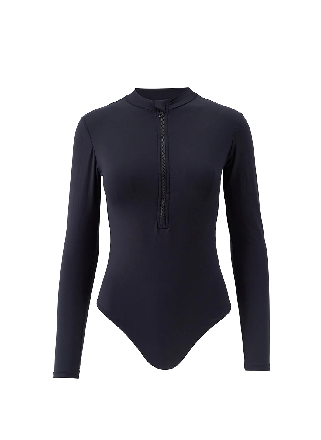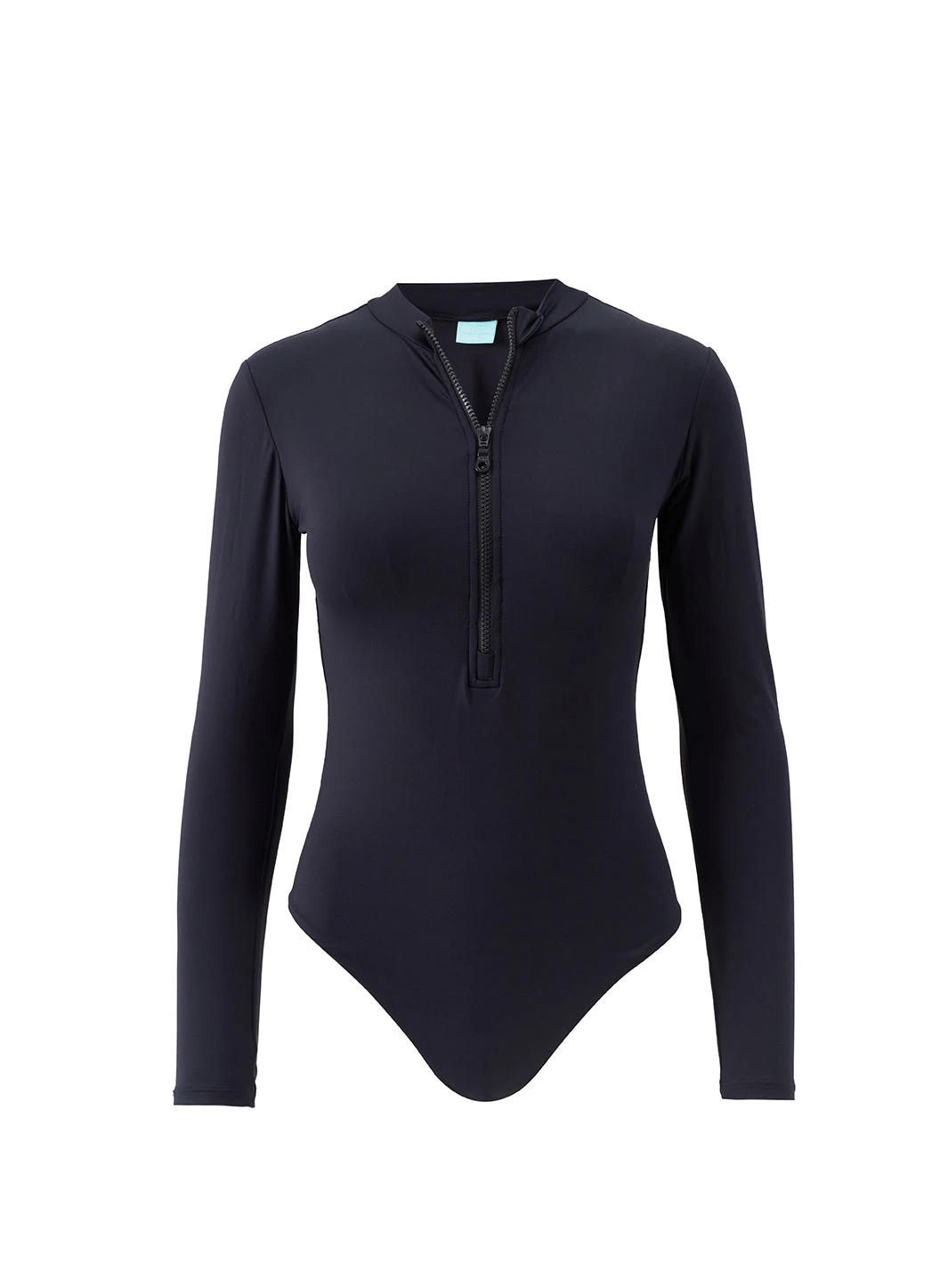 Embrace adventure on the water during your next vacation in the Exclusive Monte Carlo Swimsuit. In a sleek ‘Black’ this style is cut from premium Italian swim fabric, soft against the skin with multi-way stretch ensuring optimal function without compromising on style. Monte Carlo boasts a high neck and long sleeves with sporty zip up fastening.