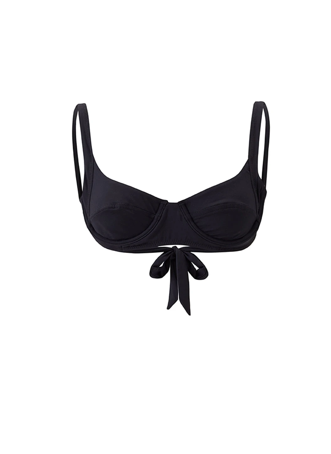 A must for those who favour minimalist design, choose the Noto Bikini Top for your next sunshine break. In Black, this exclusive style is crafted from premium Italian swimwear fabric and boasts SPF 50+ protection. A bralette top provides support with underwired cups, adjustable straps and a tie-back fastening. Wear with matching bottoms and add the exclusive Roxanne sarong in White for effortless style.