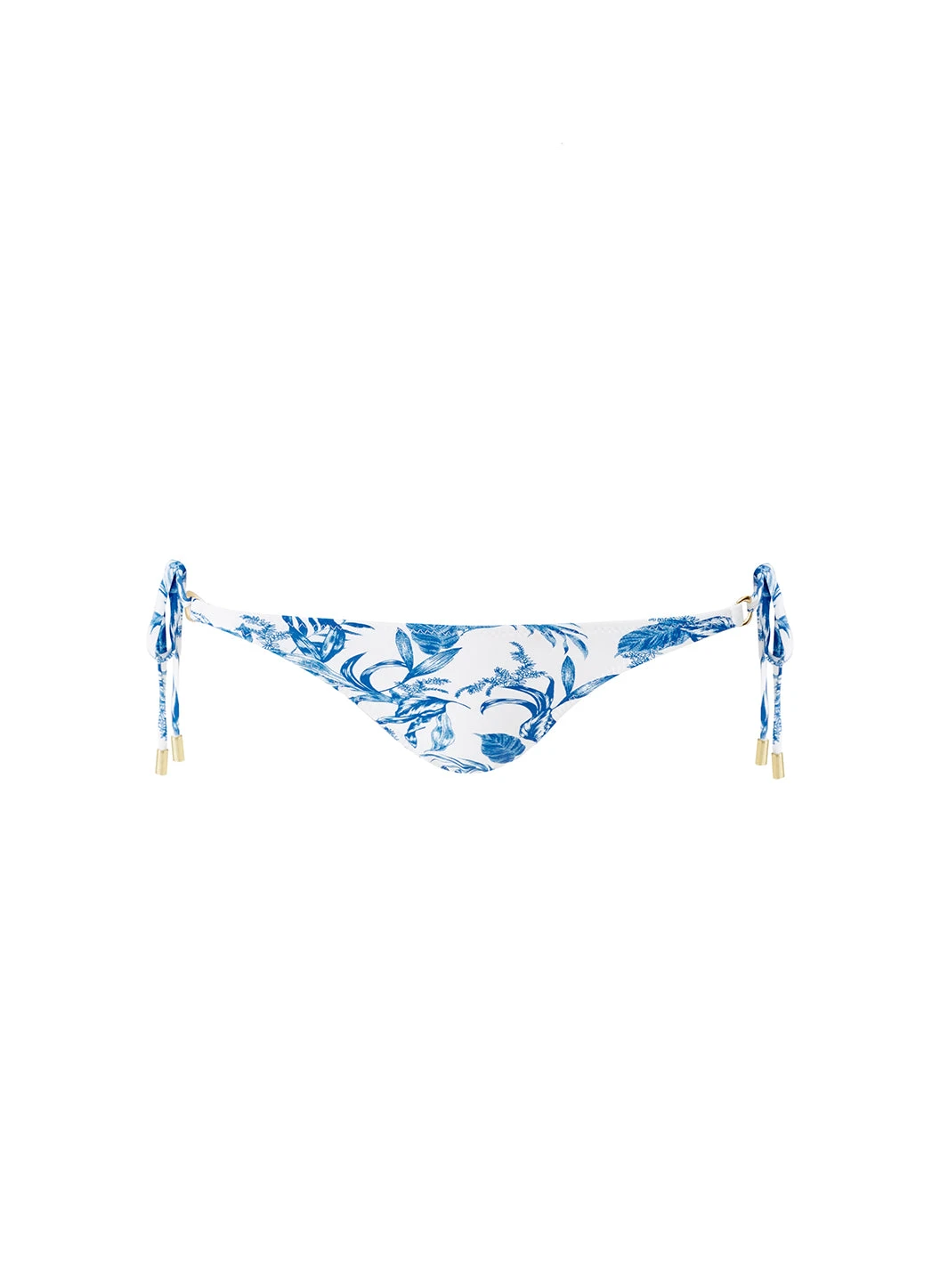 An Odabash classic reimagined in our Blue Leaf print for Cruise 2025, elevate your swimwear collection with the Key West Bikini Bottom. Emblazoned in a delicate botanical motif, this blue and white set is crafted from premium swim fabric with SPF 40+ protection. The tie-side bikini bottoms are adorned with signature branded cord-ends, style with the matching triangle bikini top.
