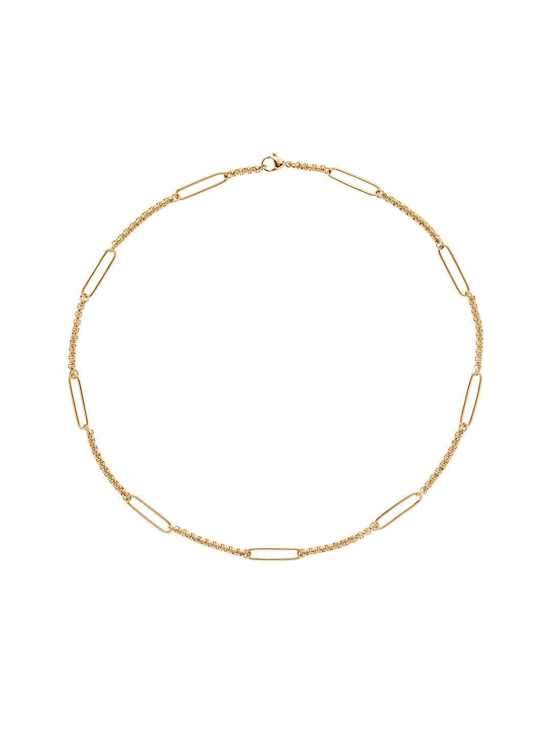 A classic reimagined – introducing the Gold Chain Necklace. Crafted with refined paperclip links and accented by intricate rope chain detailing, this piece strikes the perfect balance between boldness and elegance. Wear it solo for a statement look or layer with a delicate pendant, like the Gold Turquoise Star Necklace.