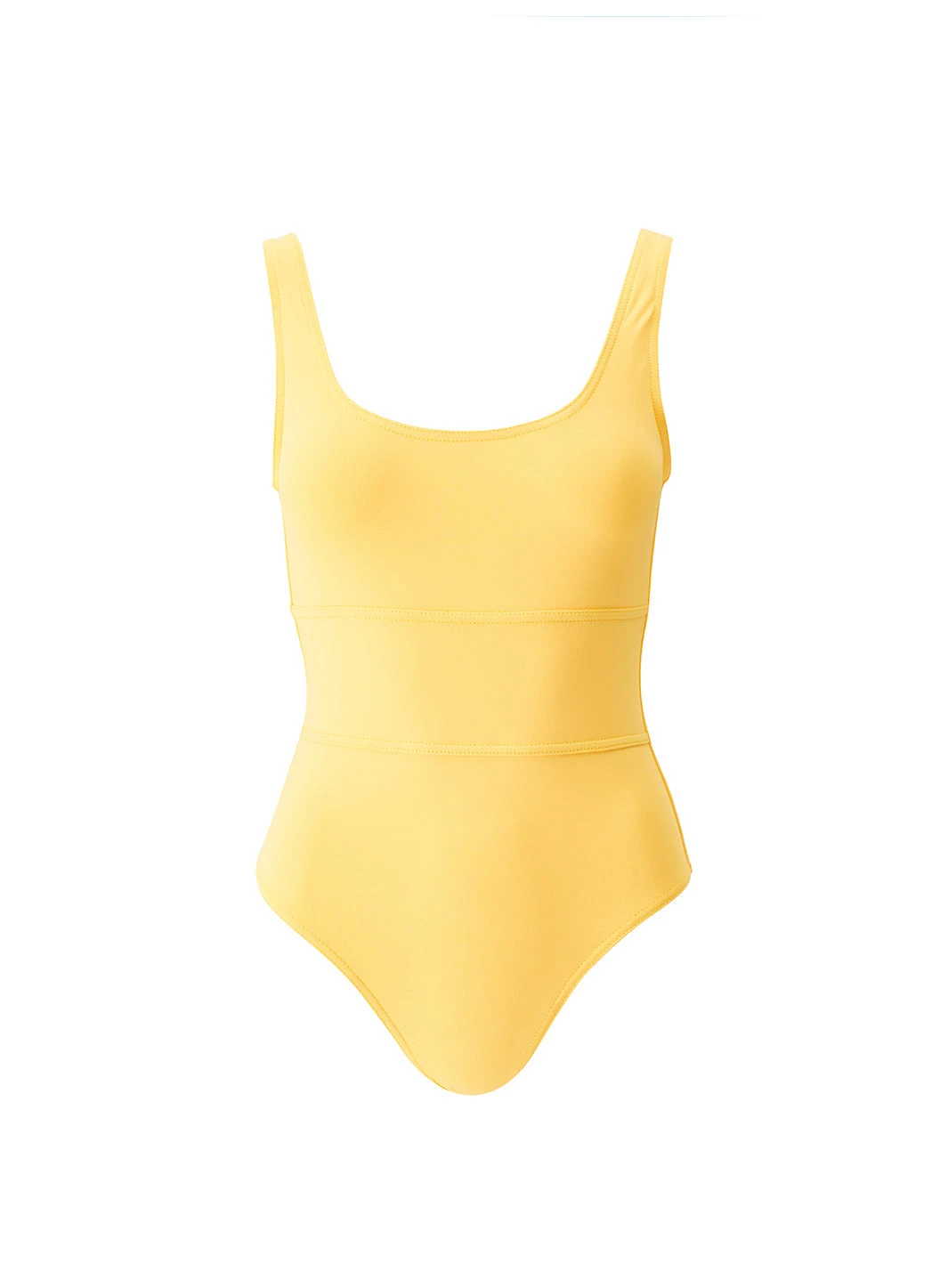 Choose swimwear to match your holiday mindset like the Perugia Swimsuit. Cheerful and bright in a feel-good shade of Sunshine yellow with SPF 50+ protection, its streamlined silhouette has made it an Odabash staple. Effortlessly elegant, it boasts over-the-shoulder straps, a deep scooped back and is finished with a waist defining panel.